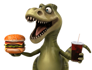 Hamburguesas jugosas y papas crujientes en un mundo jurásico para toda la familia.